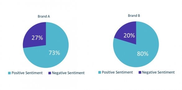 Based on the sentiment results in Figure 1, an insights professional might conclude that Brand B is doing better than Brand A with its product users because Brand B has higher positive sentiment. (Note: Difference is statistically significant.)