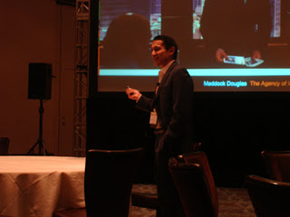 In the innovation process, Maddock Douglas has a Global Expert Network (GEN) of 6,000 innovators that they can look to for external ideas and innovation. It is not necessary though to have a GEN in order to have external ideas, as long as you are looking outside of the box. The speakers then moved on to an interactive session called the "toothpick" test where attendees had to remove toothpicks from a board in order to create squares. The purpose of the test was to see if anyone asked helped and no one did. The reason why they didn't ask for help was because before the test Mike mentioned to everyone that they are smart and didn't need help. This proves that by motivating employees and keeping their spirits up, much more can be done.