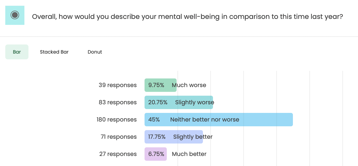 We’ve discussed mental health quite a bit, but what about physical health? This year, we asked respondents to tell us how their physical and mental health had changed (if at all) since last year. 27% of respondents told us that their physical health has worsened in 2021, and approximately the same percentage told us that their physical health had gotten better this year. The interesting bit comes when we cross-reference those that feel their physical health has worsened since last year; they also feel their mental health has worsened since 2020. The data demonstrates that health is...health. And while some people think of physical and mental health as separate things, they’re far more connected than people used to think.