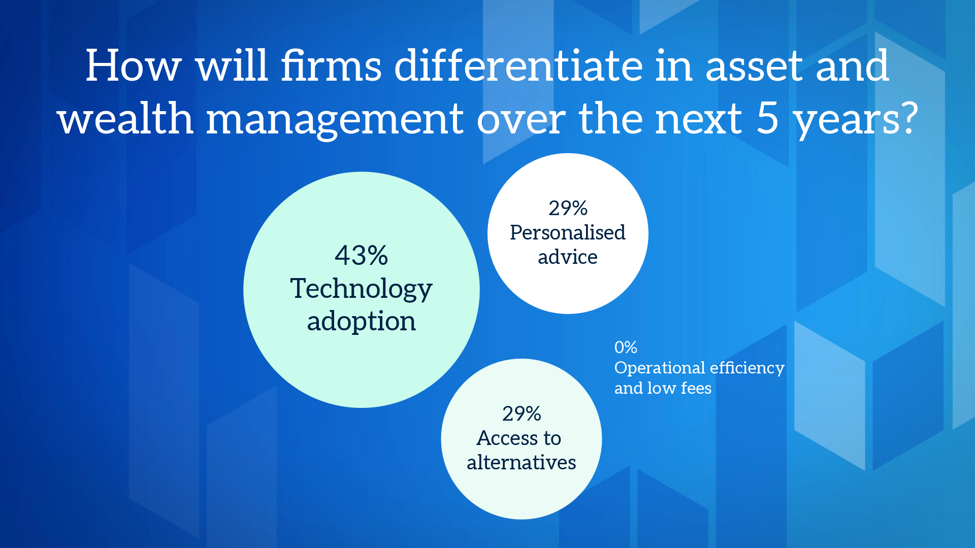 As client expectations grow and market dynamics shift, firms are exploring various strategies to stand out. A recent poll sheds light on how firms plan to differentiate themselves over the next five years. The results reveal a strong focus on technology adoption (43%), followed by more personalised advice (29%) and access to alternatives (29%), while operational efficiency and low fees received no votes (0%). These findings highlight the priorities shaping the future of the industry.