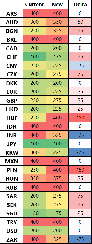 Appendix – a list of proposed parallel shock changes per currency