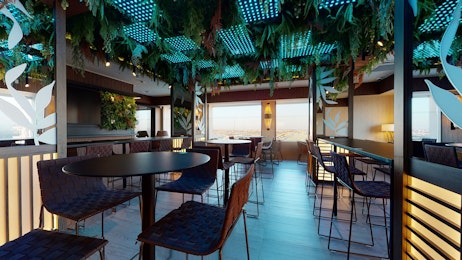 Enjoy rooftop networking in Madrid.